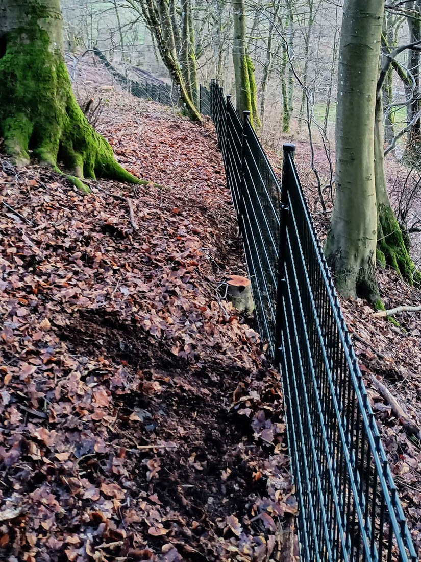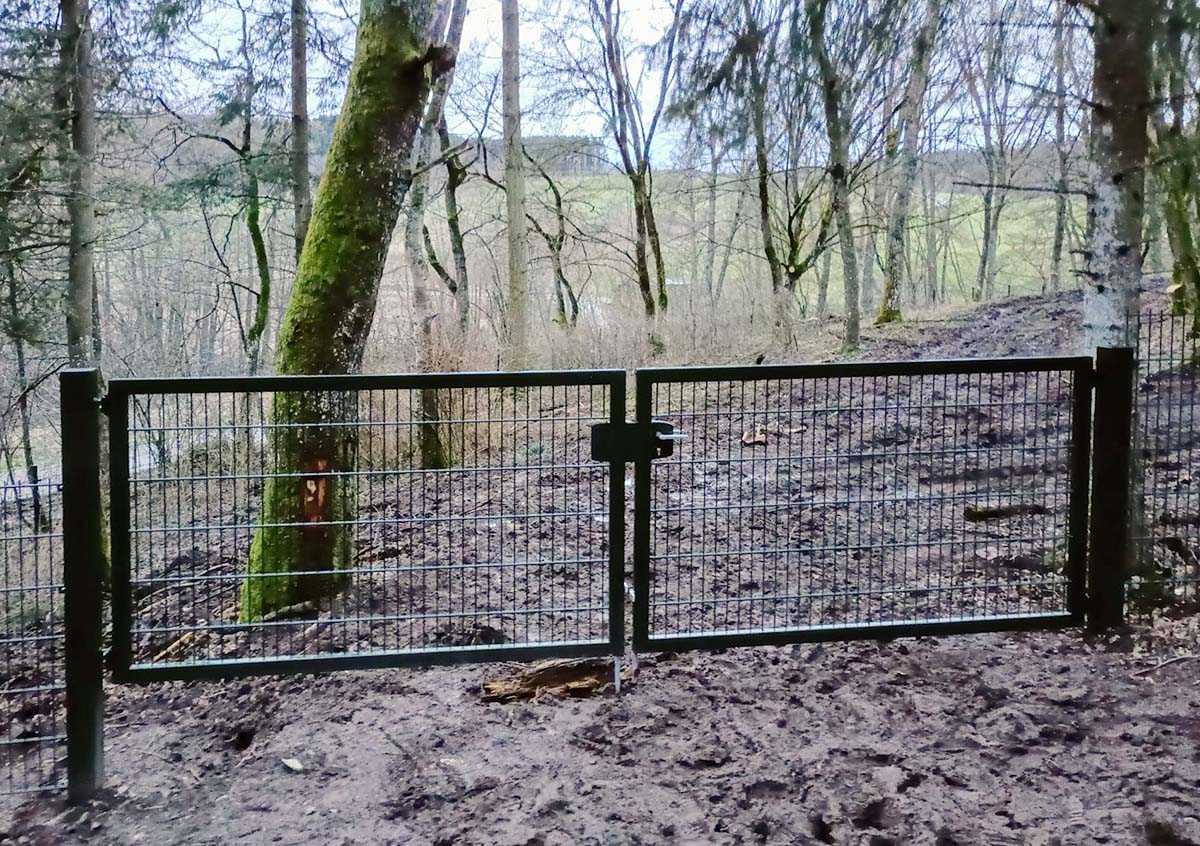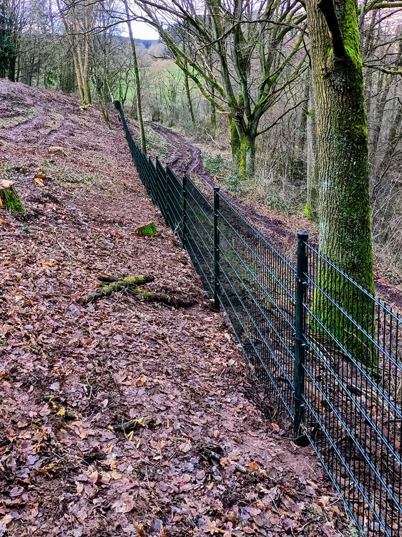 Kilometers dubbelstaaf hekwerk door het bos in Eiffel. Ook klussen die wat groter en heuvelachtiger zijn dan de gemiddelde tuin klaren wij met gemak!